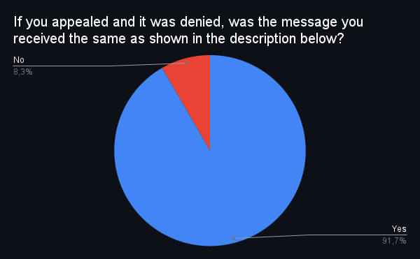 In my survey, I also asked people whether they received a particular message when their appeal was rejected.