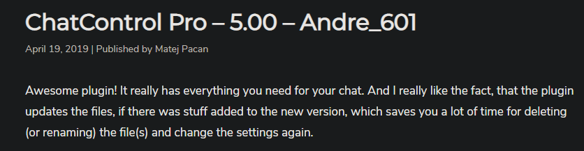 The Review I once made on Spigot, visible on MA until I requested to get it removed.